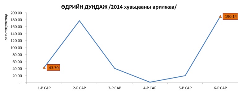 Монголын Хөрөнгийн Биржийн хувьцааны арилжааны өдрийн дундаж үнийн дүн 2014 оны эхний хагас жилийн байдлаар 22,9 хувиар өсч 190,135,862.32 төгрөгт хүрлээ.
